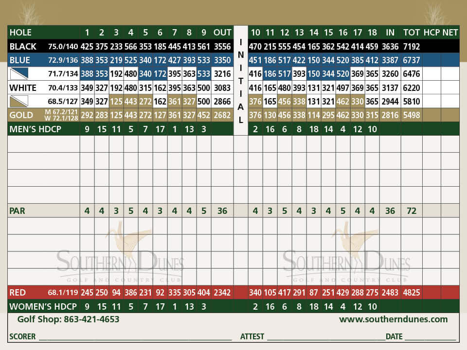 - Play award winning and unique Southern Dunes, consistently ranked among the nations best